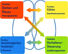 Die jeweiligen Farben stehen für die Gehirnfunktionen